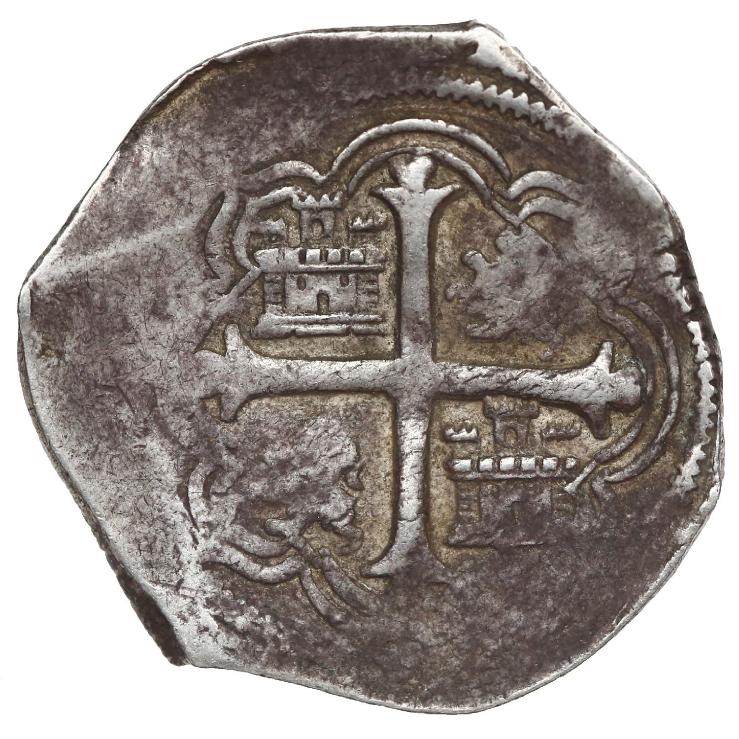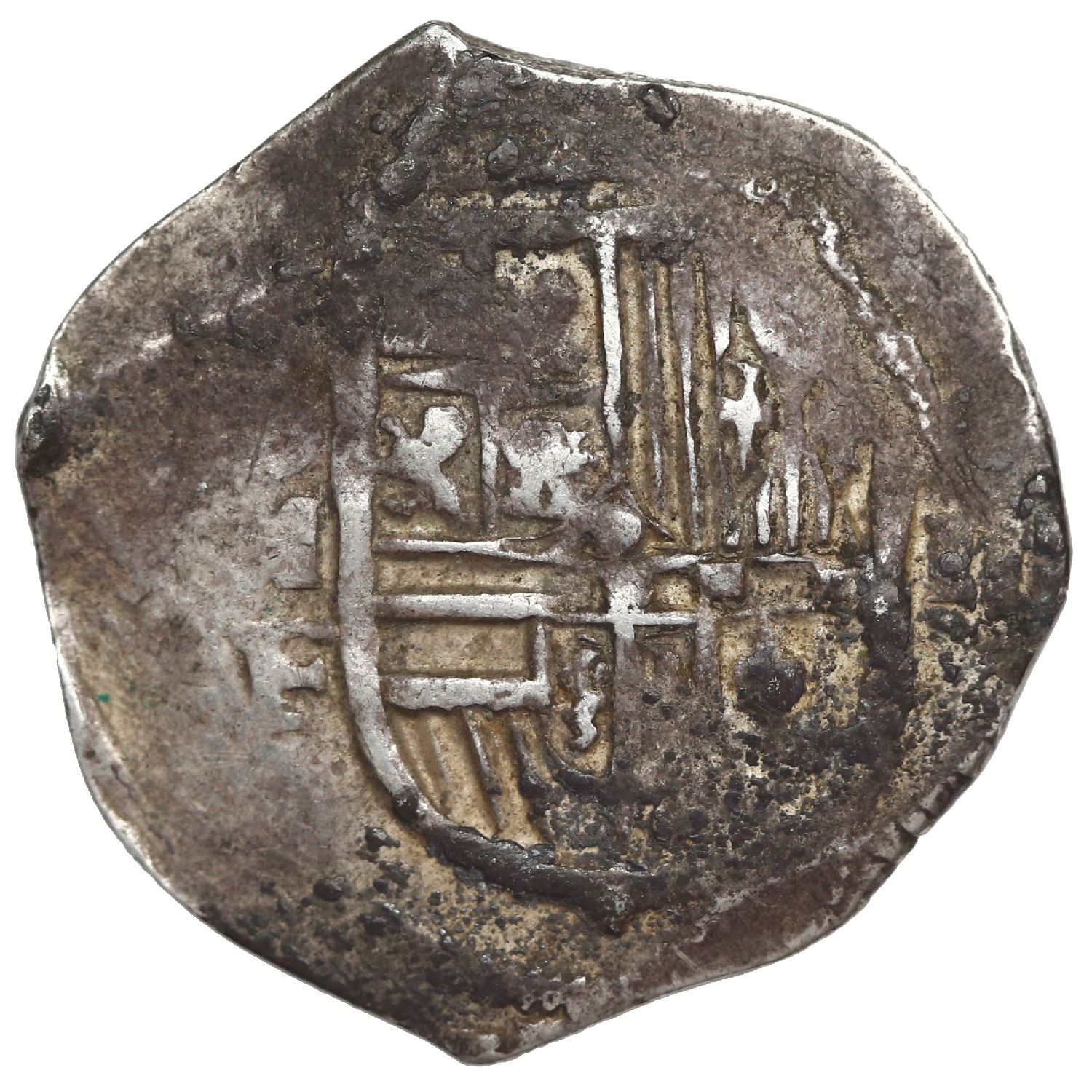 Mexico City, Mexico, cob 2 reales, Philip III, assayer F. S-M15; KM-32.2. 6.71 grams. Nice full cross on this richly toned VF, nearly full shield with bold assayer F, specks of encrustation on obverse.
