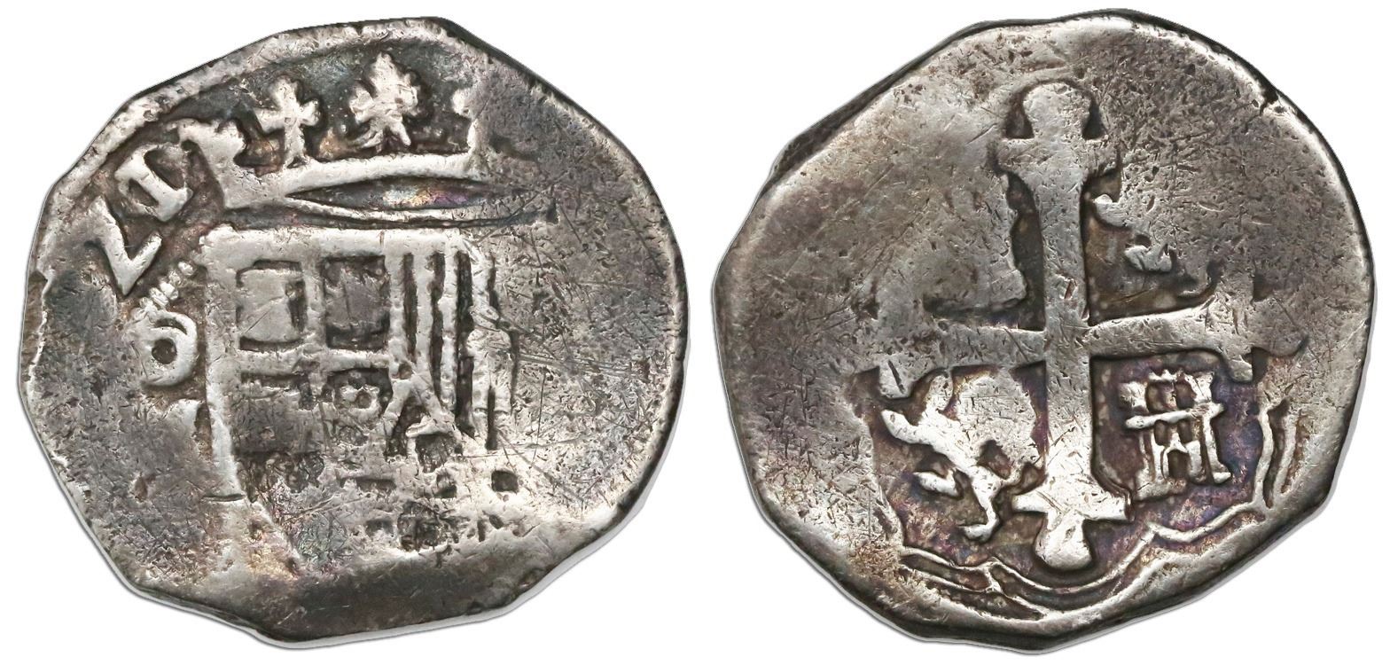 Mexico City, Mexico, cob 4 reales, (1)621/0(D), rare. S-M18; KM-unl (type 37.2). 13.09 grams. Very bold date with obvious overdate, nearly full crown, good full cross, toned Fine.