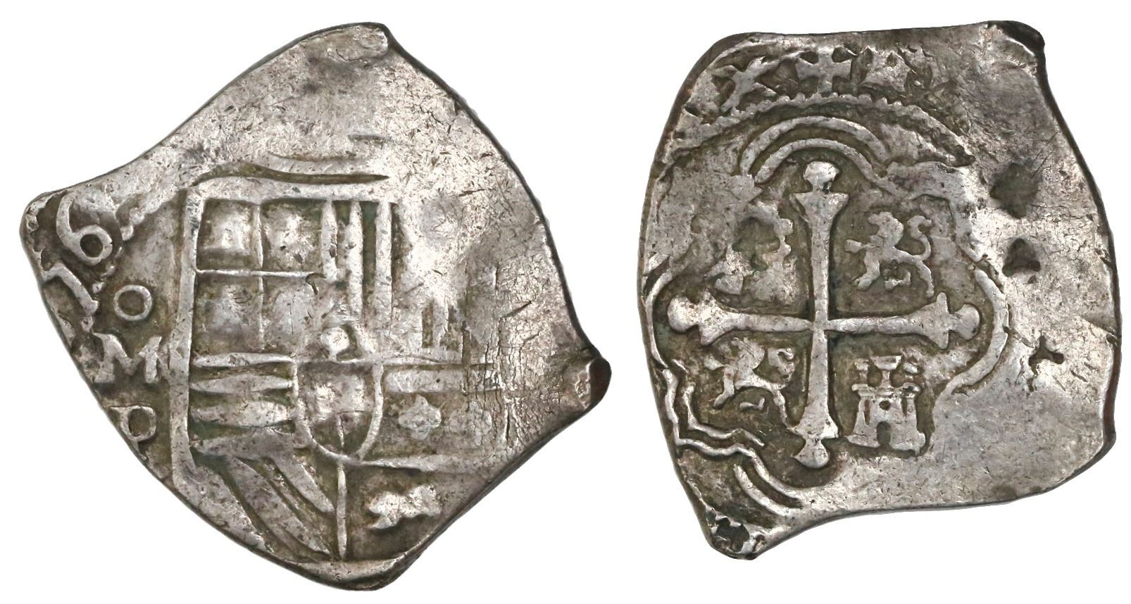 Mexico City, Mexico, cob 4 reales, (16)56P, with chopmarks as from circulation in Asia. S-M19; KM-38; CT-712. 13.40 grams. Choice full cross-lions-castles and shield, bold full oMP and 56 of date (rare thus), VF+ with lightly toned fields, several tiny chops on reverse only. Pedigreed to the Ponterio auction of November 2007 (lot #616).