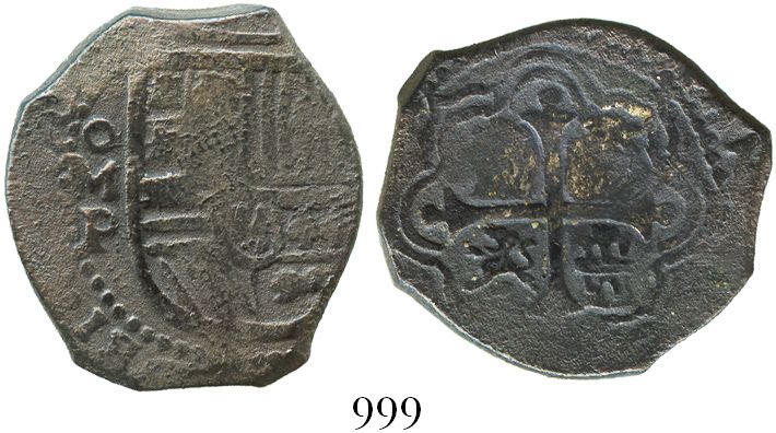 Mexico City, Mexico, cob 4 reales, (16)58P. S-M19; KM-38; CT-714. 13.7 grams. Bold full oMP and 58 of date, good full cross, full but off-center shield, dark-brown toning and surface corrosion as probably from an Indonesian wreck.