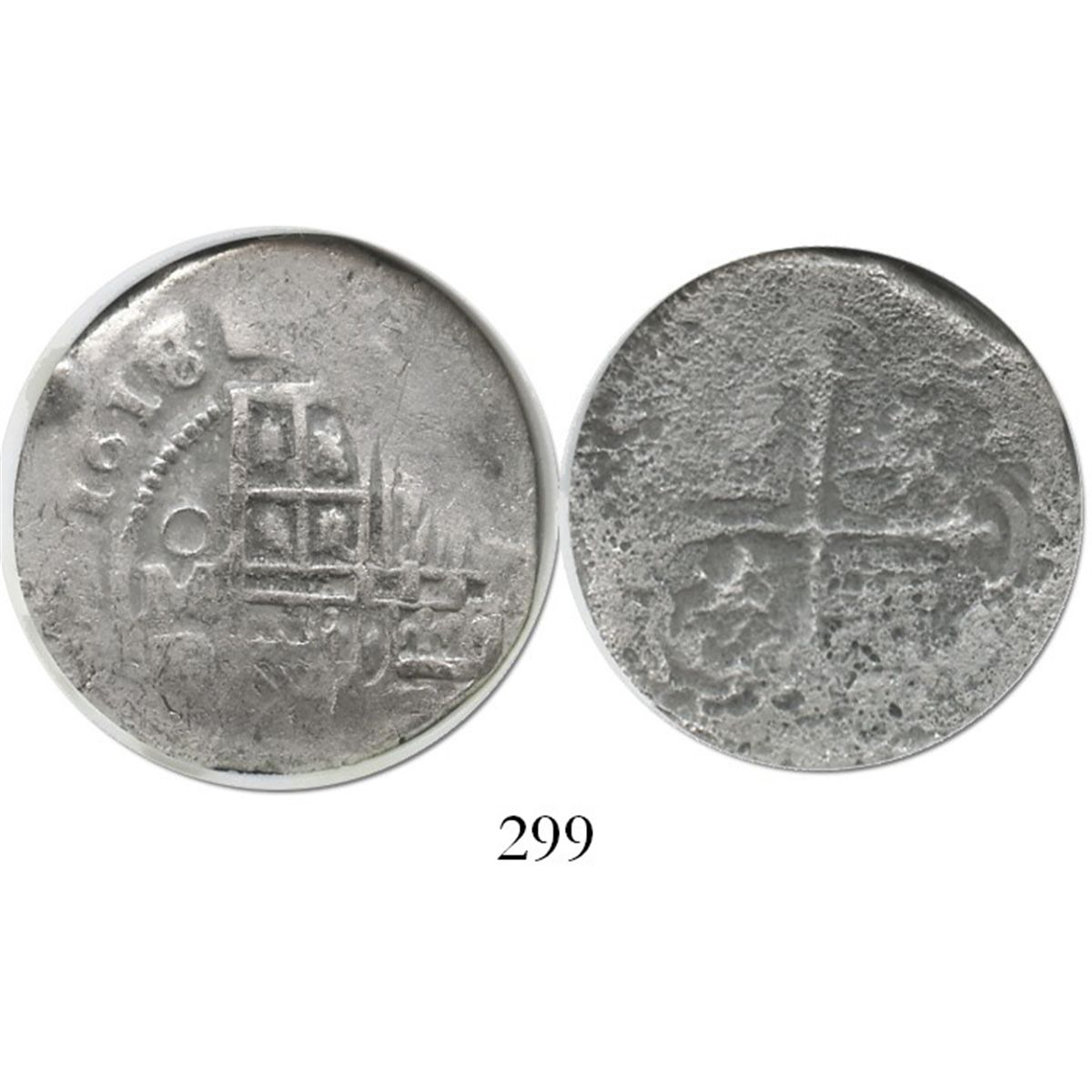 Mexico City, Mexico, cob 4 reales, 1618/7D, Grade 2, very rare.