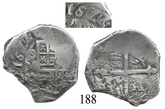Mexico City, Mexico, cob 4 reales, 1622/0/19, oMD, full and bold date with clear overdate (with matching tag number), Grade 1. S-M18a. 11.5 grams. The perfect coin for anyone obsessed with the 1622 Fleet, as the 1622 date is 100% full and bold (with curious multi-year overdate) and the assigned number on the tag and certificate is 1622 as well (by chance or intentional?), also full cross and nearly full shield, clear oMD, corroded only near part of the edge, good toning. Recovered from: Santa Margarita, sunk in 1622 west of Key West, Florida. With Fisher certificate #1622.