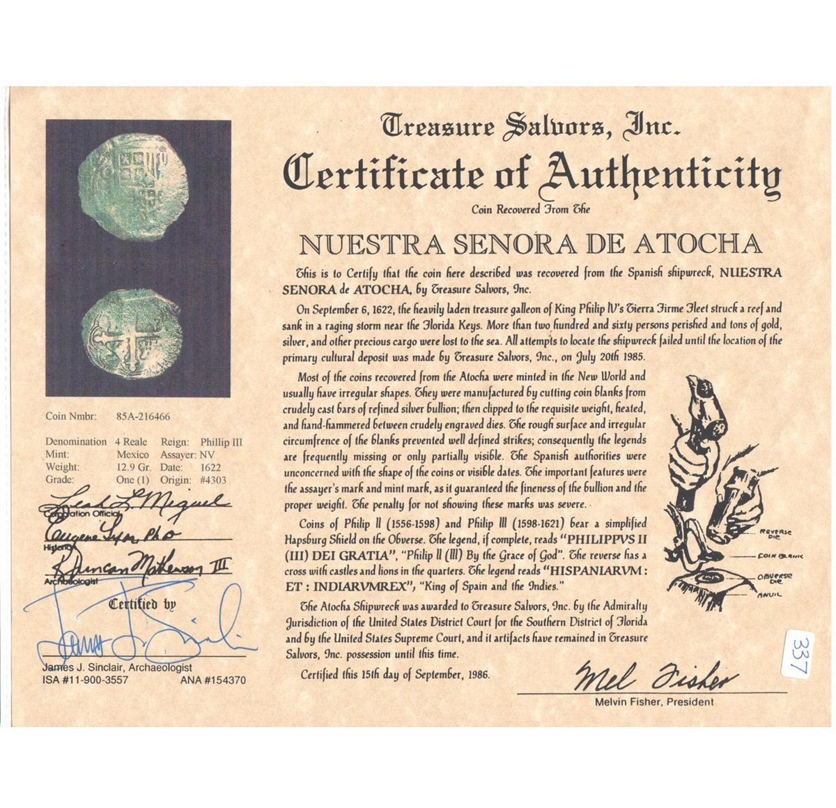 All items are genuine unless noted. Most shipwreck coins and artifacts come with a certificate of authenticity (please check the description for each item). By bidding in this auction you understand and agree to the Terms and Conditions posted here.