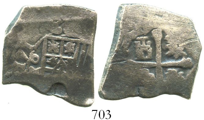 Mexico City, Mexico, cob 4 reales, 1712(J). S-M22; KM-40; CT-1017. 12.9 grams. Interestingly squarish shape with partial air-bubble at one side, full date except for last digit, full cross, nicely toned, little or no corrosion. Recovered from: Spanish 1715 Fleet, sunk off the east coast of Florida