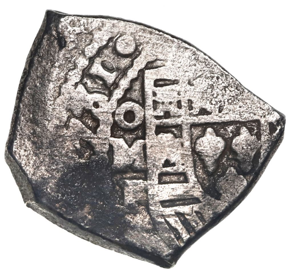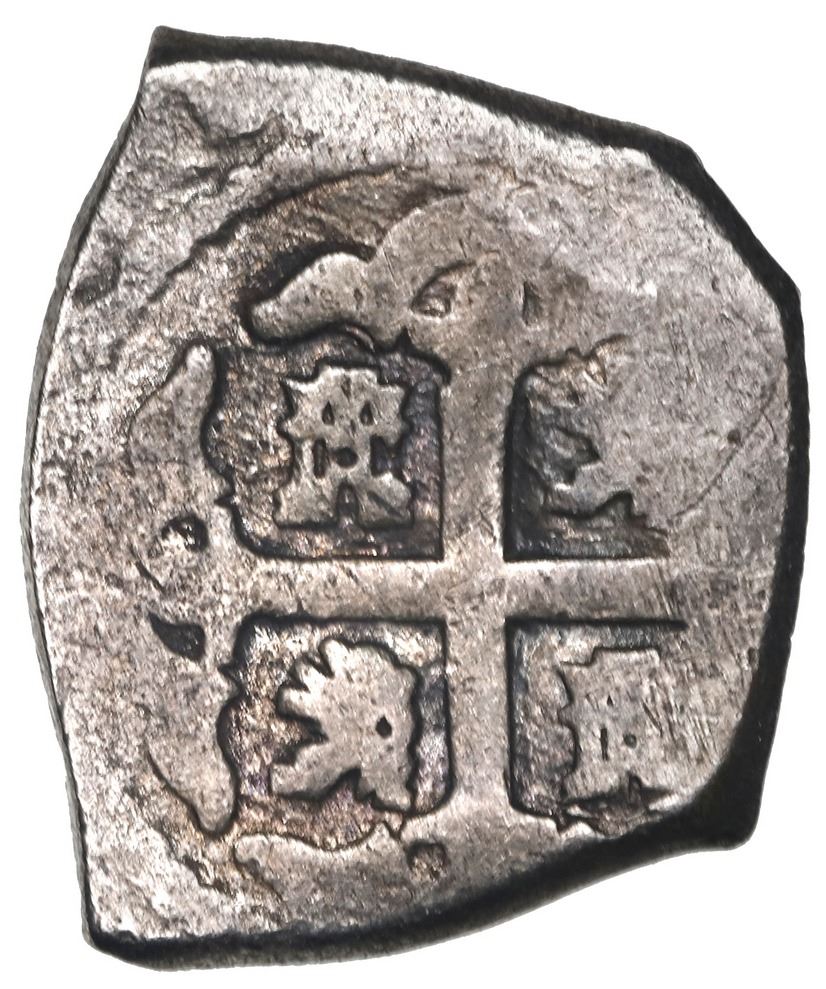 Mexico City, Mexico, cob 4 reales, 1731/0 F. S-M26; KM-40a; Cal-1093. 13.045 grams. Full date with very bold overdate (scarce), full oMF, nearly full cross, toned XF with patch of dark "horn" silver (probably salvaged).