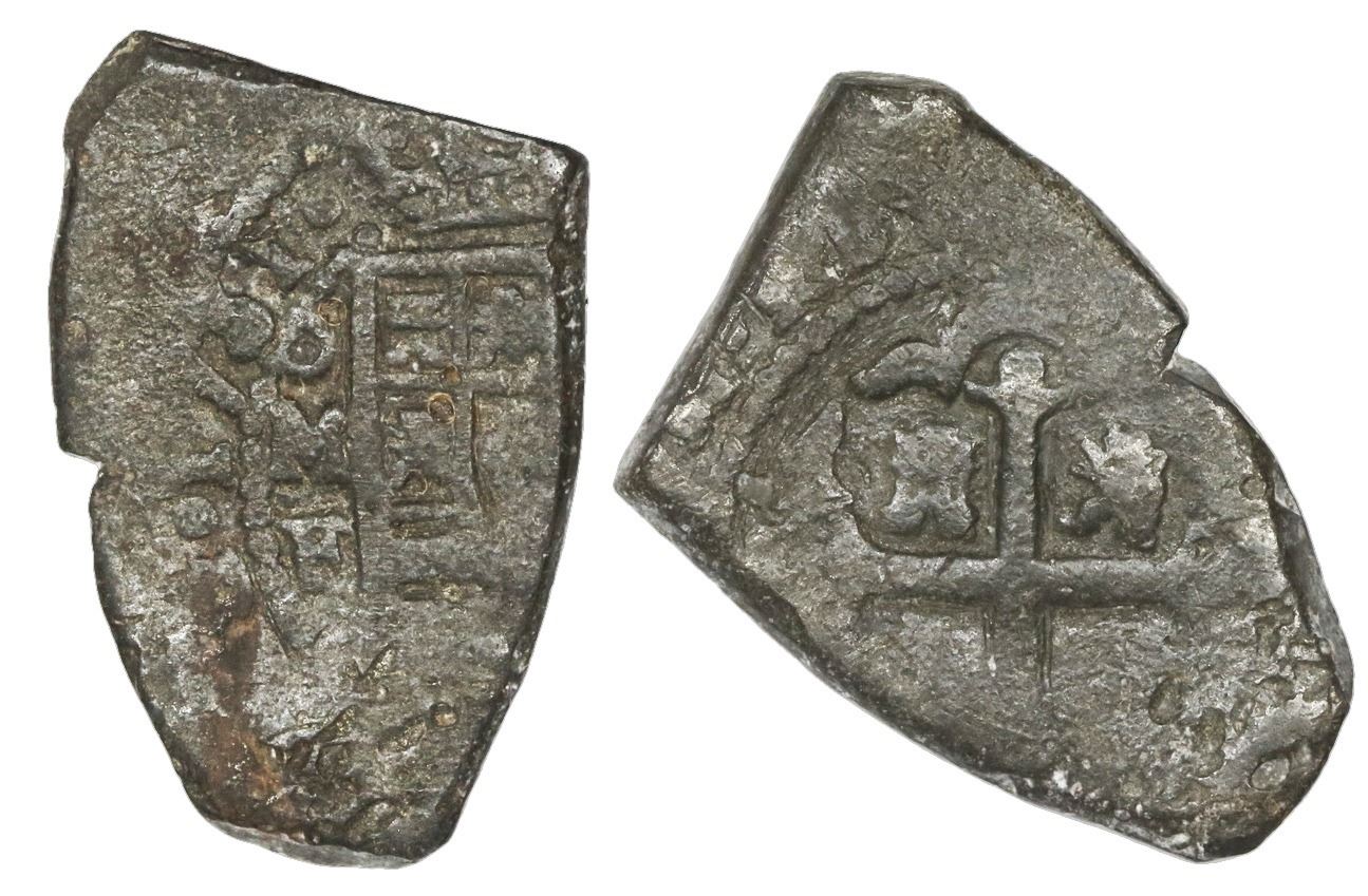 Mexico City, Mexico, cob 4 reales, 1731F. S-M26; KM-40a; CT-1029. 10.68 grams. Bold full date and oMF, neat elongated flan, Fine+ details but darkly toned and somewhat oxidized all over.