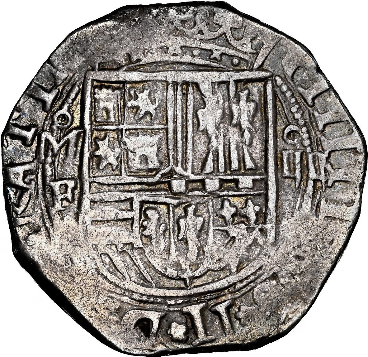 Mexico City, Mexico, cob 4 reales, Philip II, assayer F below mintmark oM to left, denomination o-IJ