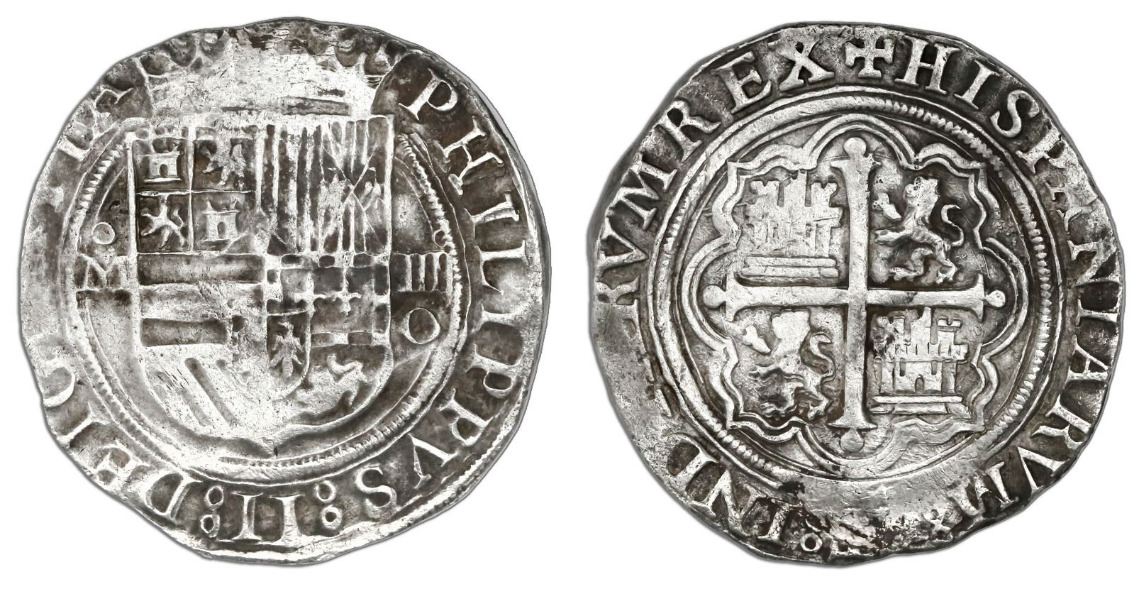 Mexico City, Mexico, cob 4 reales, Philip II, assayer O below denomination oIIII to right, mintmark