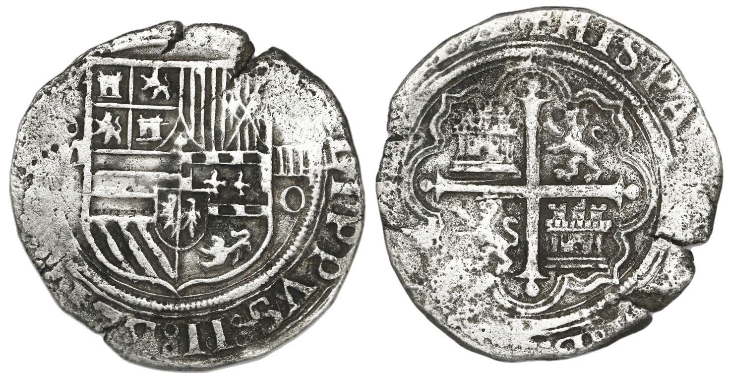 Mexico City, Mexico, cob 4 reales, Philip II, assayer O below denomination oIIII to right, mintmark