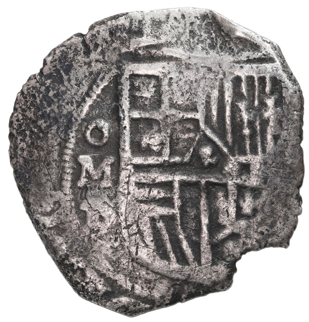 Mexico City, Mexico, cob 4 reales, Philip IV, assayer D. S-M18a; KM-38. 11.98 grams. Nearly complete shield and cross with spotty dark toning, nice full mintmark and assayer. Recovered from: "Lucayan Beach wreck," sunk ca. 1628 off Grand Bahama Island.
