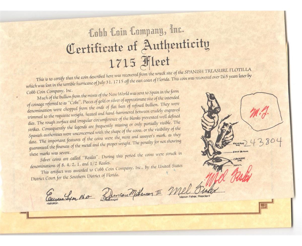 All items are genuine unless noted. Most shipwreck coins and artifacts come with a certificate of authenticity (please check the description for each item). By bidding in this auction you understand and agree to the Terms and Conditions posted here.