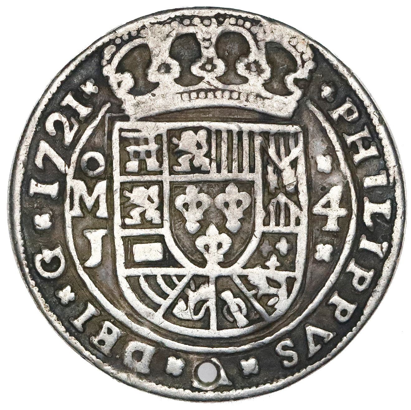 Mexico City, Mexico, cob 4 reales Royal (galano), 1721J, unique.
