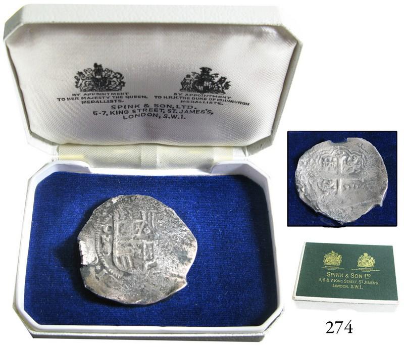 Mexico City, Mexico, cob 8 reales, (16)26D, rare, with mint-condition Spink promotional box.