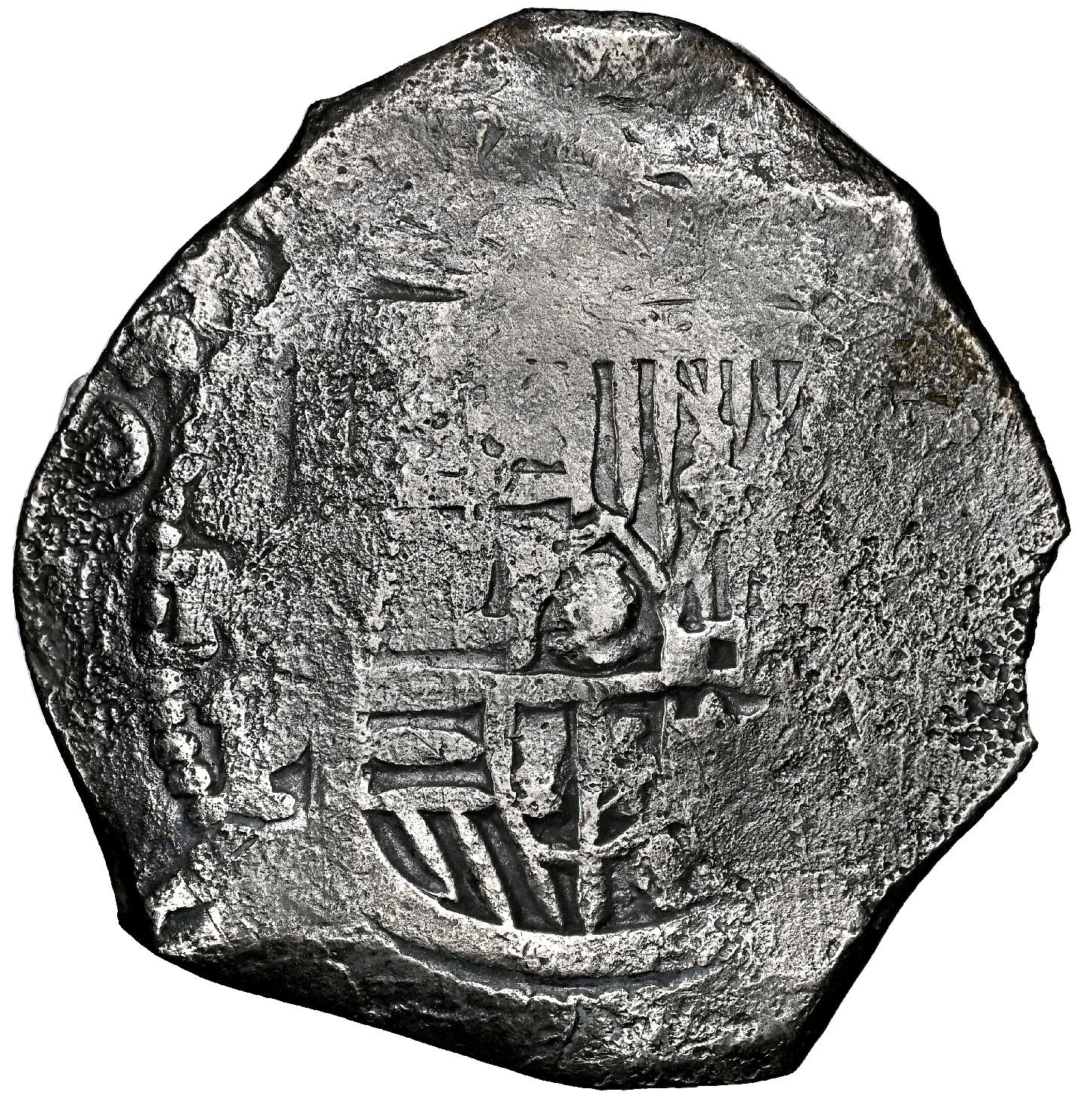 Mexico City, Mexico, cob 8 reales, 1639 P, NGC VF details / saltwater damage / Concepcion (Shipwreck Blue Label). S-M19; KM-45; Cal-1328. 26.00 grams. Solid (minimal surface corrosion) but somewhat weakly struck, most of cross and shield and date visible nonetheless, lightly toned. Pedigreed to the 45th Anniversary Collection, with original tag 16004 and official (generic) Letter of Authenticity. Recovered from: Concepcion, sunk in 1641 off Hispaniola