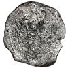 Mexico City, Mexico, cob 8 reales, 1655 P, ex-MAREX. S-M19; KM-45; Cal-1359. 19.74 grams. Broad flan but corroded all over, still with clear date, part of edge bent and hairline edge-split. With original MAREX tag and photo-certificate 91-8R-4359. Recovered from: Maravillas, sunk in 1656 off Grand Bahama Island