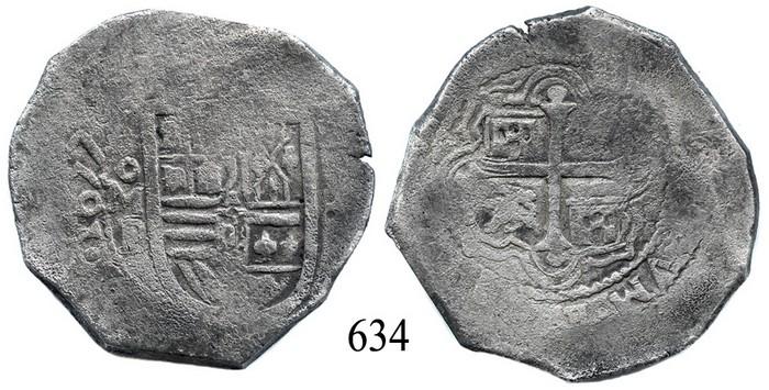 Mexico City, Mexico, cob 8 reales, 1657, oMP, scarce. S-M19. 27.1 grams. Big flan with bold date and mintmark, full shield and cross, the peripheries all flat, minimal corrosion, VF details. From an unspecified shipwreck, probably the "Jupiter wreck" (1659).