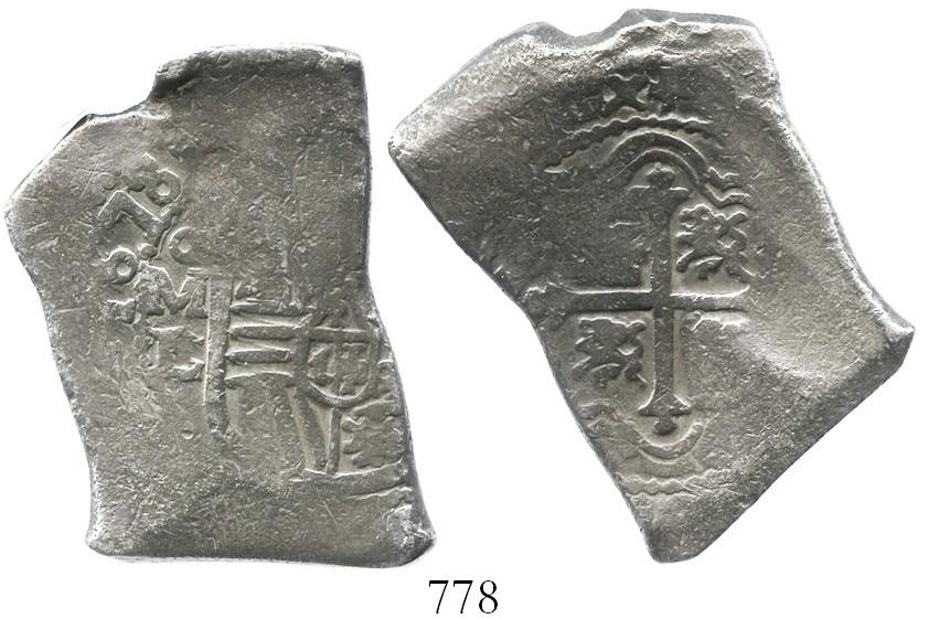 Mexico City, Mexico, cob 8 reales, 1678L/G, choice and probably unique. S-M21; KM-unl. (cf. 46). 25.3 grams. Incredibly bold, full date and oML (with clear overassayer, first we have ever seen), very solid and uncorroded flan, well above average for this wreck and a highly important numismatic piece even without the wreck provenance. From the Joanna, sunk in 1682 off South Africa, pedigreed to the Ponterio auction of February 13, 1999, with lot-tag #235 and certificate.