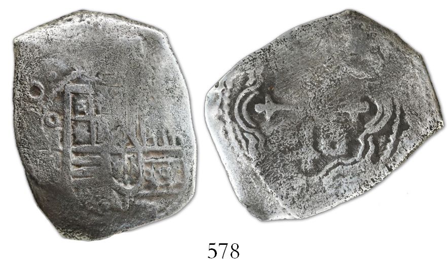 Mexico City, Mexico, cob 8 reales, (168)0(L). S-M21; KM-46; CT-280. 20.71 grams. Bold 0 of date, full shield, the rest of the coin somewhat weak due to strike and sea-wear. Recovered from: Joanna, sunk in 1682 off South Africa