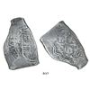 Mexico City, Mexico, cob 8 reales, 1681L. S-M21; KM-46; CT-281. 25.03 grams. Interesting shape (like a tall bottle with a flat bottom), with full date and oML, full cross and most of shield despite light surface corrosion and flatness, toned. Recovered from: Joanna, sunk in 1682 off South Africa
