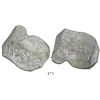 Mexico City, Mexico, cob 8 reales, 1704(L), very rare. S-M21a; KM-47; CT-734. 27.36 grams. Interesting shape, very solid and uncorroded, clear bottom half of date, most of shield and cross, typically flat peripheries, no toning (tiny green spots). Recovered from: Spanish 1715 Fleet, east coast of Florida