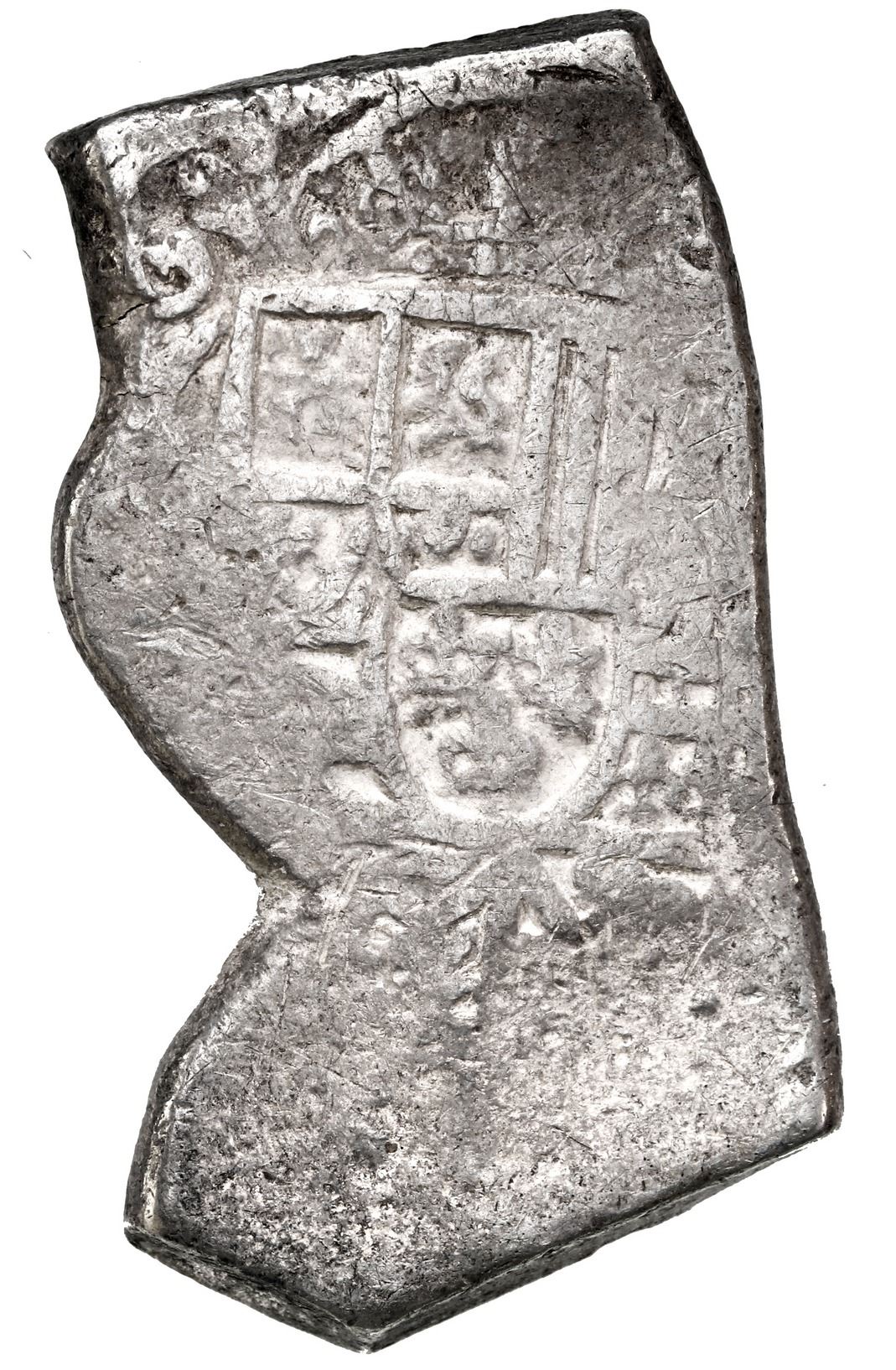 Mexico City, Mexico, cob 8 reales, 1706/5 (J), very rare. S-M22; KM-unl; Cal-unl. 26.71 grams. Interesting shape and technically high grade (non-toned AU) but typically weakly struck, with most of shield and cross, bold full 6 of date with evidence of 6/5 (possibly unique, first we have seen).