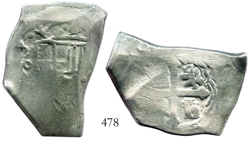 Mexico City, Mexico, cob 8 reales, (171)3(J). S-M22; KM-47; CT-742. 25.8 grams. Bold 3 of date, clear mintmark and one good lion and castle but rest of coin largely flat (as struck), no corrosion (just smooth metal). Pedigreed to the estate of Karl H. Goodpaster (Real Eight conservator), with original Real Eight Co. certificate. Recovered from: 1715 Fleet, east coast of Florida