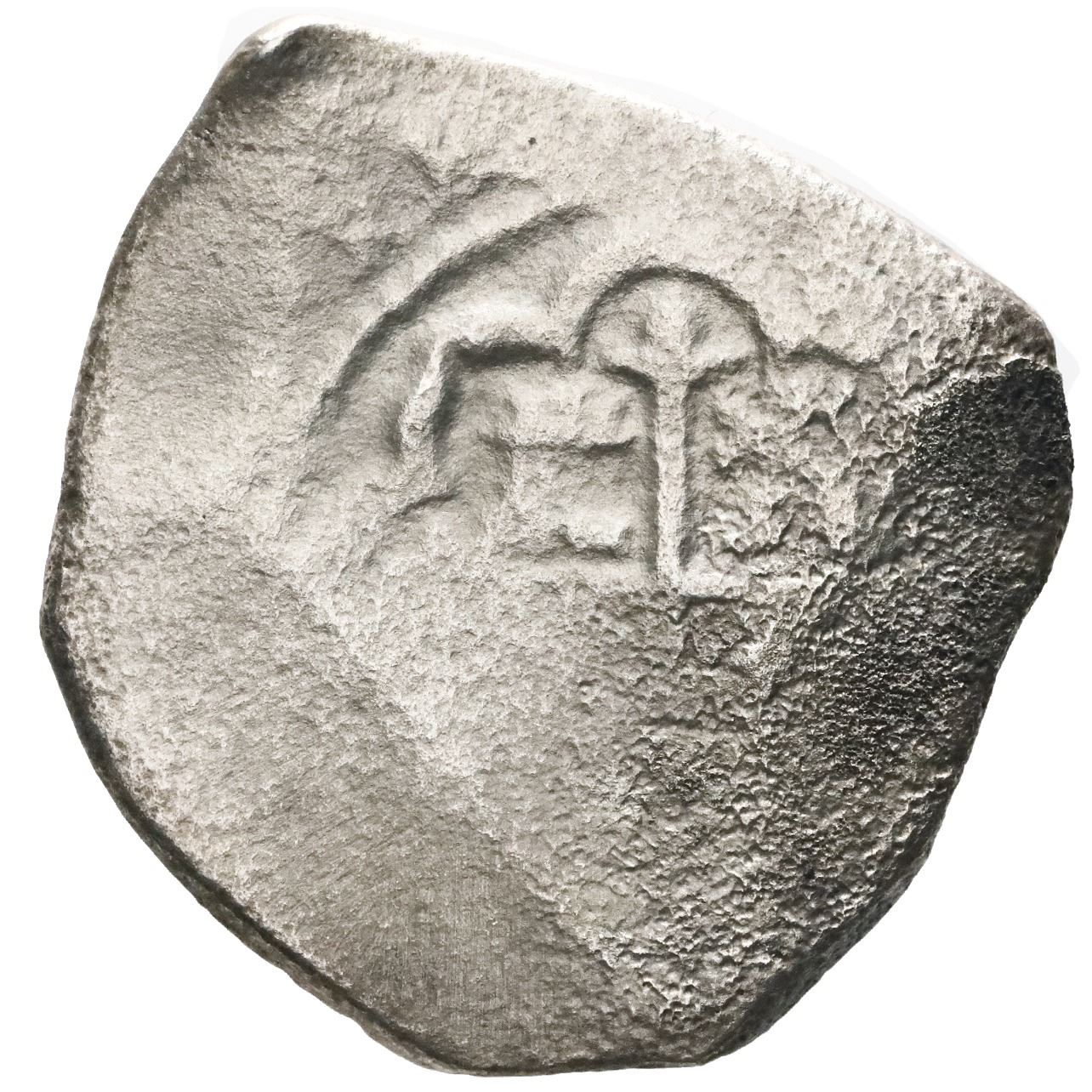 Mexico City, Mexico, cob 8 reales, 1714(J), with hand-signed Fisher certificate. S-M22; KM-47; Cal-1401. 16.64 grams. Smooth, corroded surfaces with faint but full date, some shield and cross detail. With original Treasure Salvors certificate (undated, late 1960s) hand-signed by Mel Fisher. From: Spanish 1715 Fleet, east coast of Florida