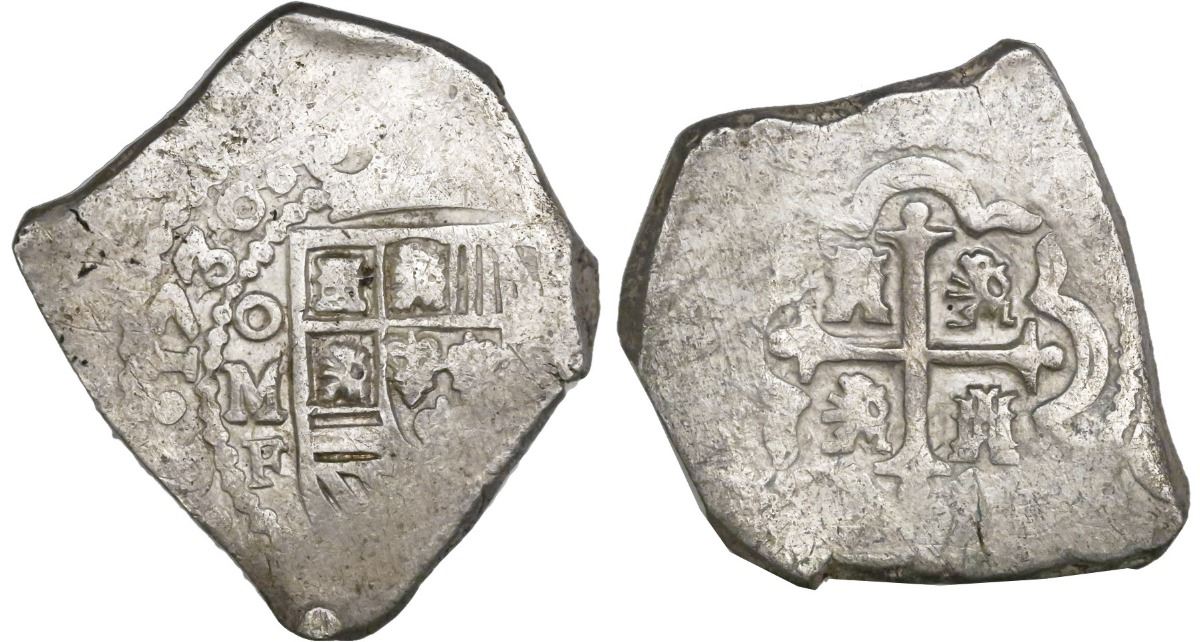 Mexico City, Mexico, cob 8 reales, 1730F, ex-Kent Ponterio. KM-47a; CT-757. 26.76 grams. Full date and oMF, good full cross and most of shield, VF with peripheral flatness. Pedigreed to the Kent Ponterio collection (Ponterio auction of January 2011, with original lot-tag #17).