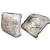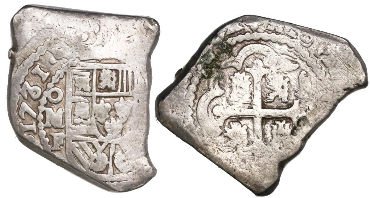 Mexico City, Mexico, cob 8 reales, 1731F. S-M26; KM-47a; CT-762. 26.90 grams. Odd shape (thick) with very bold full date and oMF, full but weaker shield and cross, Fine. Pedigreed to our Auction #14, with original lot-tag #621.