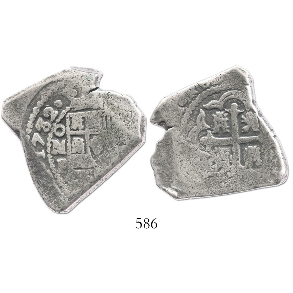 Mexico City, Mexico, cob 8 reales, 1732/1F. S-M26; KM-47a; CT-763. 26.7 grams. Impressively bold and full date and mintmark, good cross, nicely toned, About Fine, curious shape.