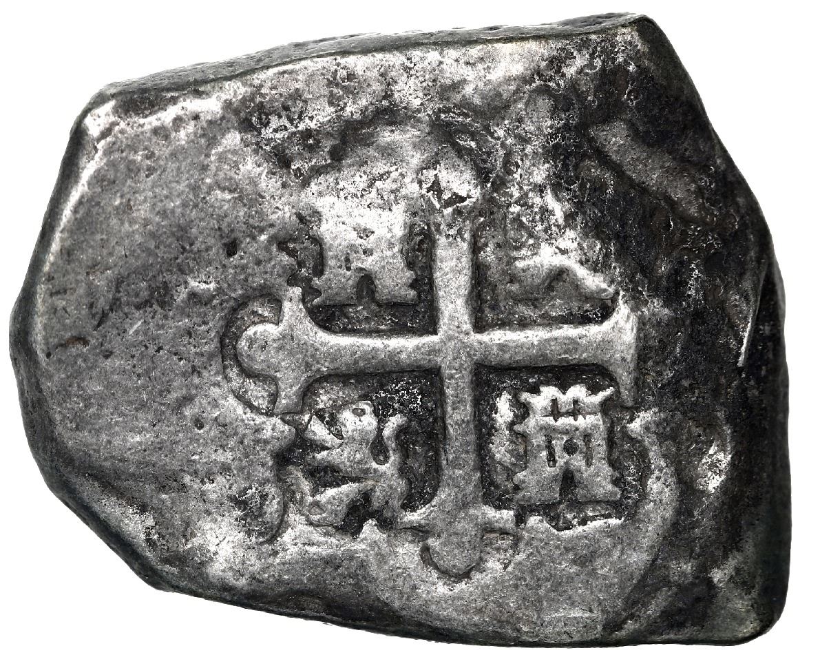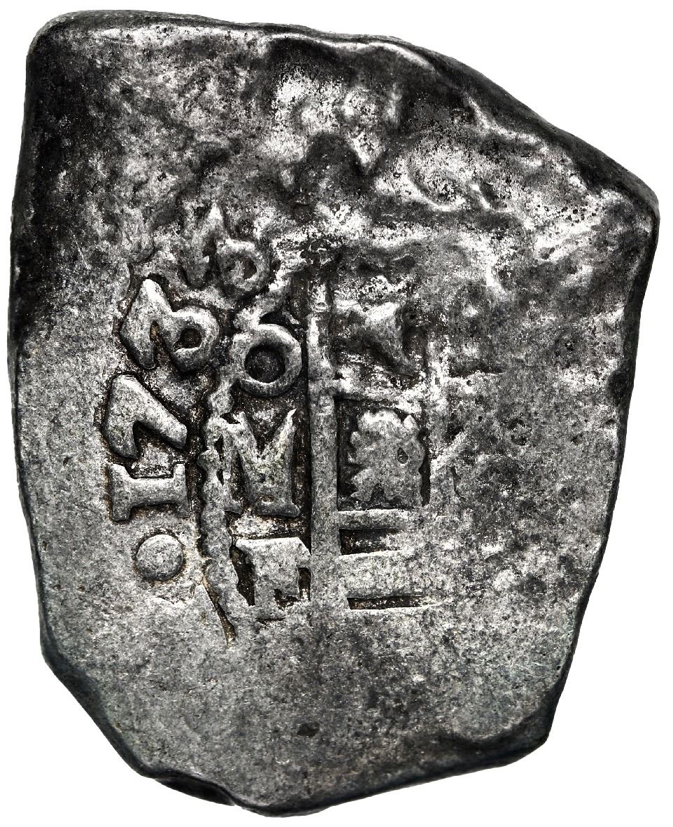Mexico City, Mexico, cob 8 reales, 1733 F. S-M26; KM-47a; Cal-1429. 23.59 grams. Very bold full date and oMF, good full cross, nicely toned, with moderate corrosion just around parts of edge, somewhat scarce without a 3/2 overdate (despite some stray bits of metal around the digit). With certificate. Recovered from: Vliegenthart, sunk in 1735 off Zeeland, the Netherlands.
