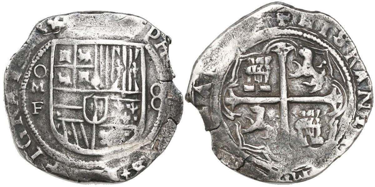 Mexico City, Mexico, cob 8 reales, Philip II, assayer F.