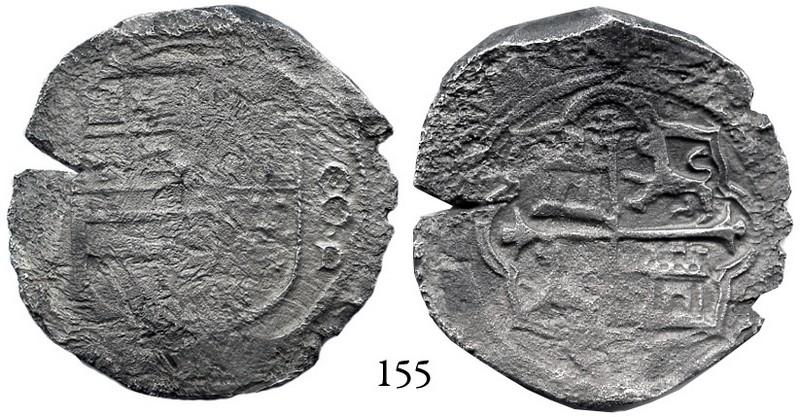 Mexico City, Mexico, cob 8 reales, Philip II or III, (oMF) to left, 8-oD to right (rare dual assayer