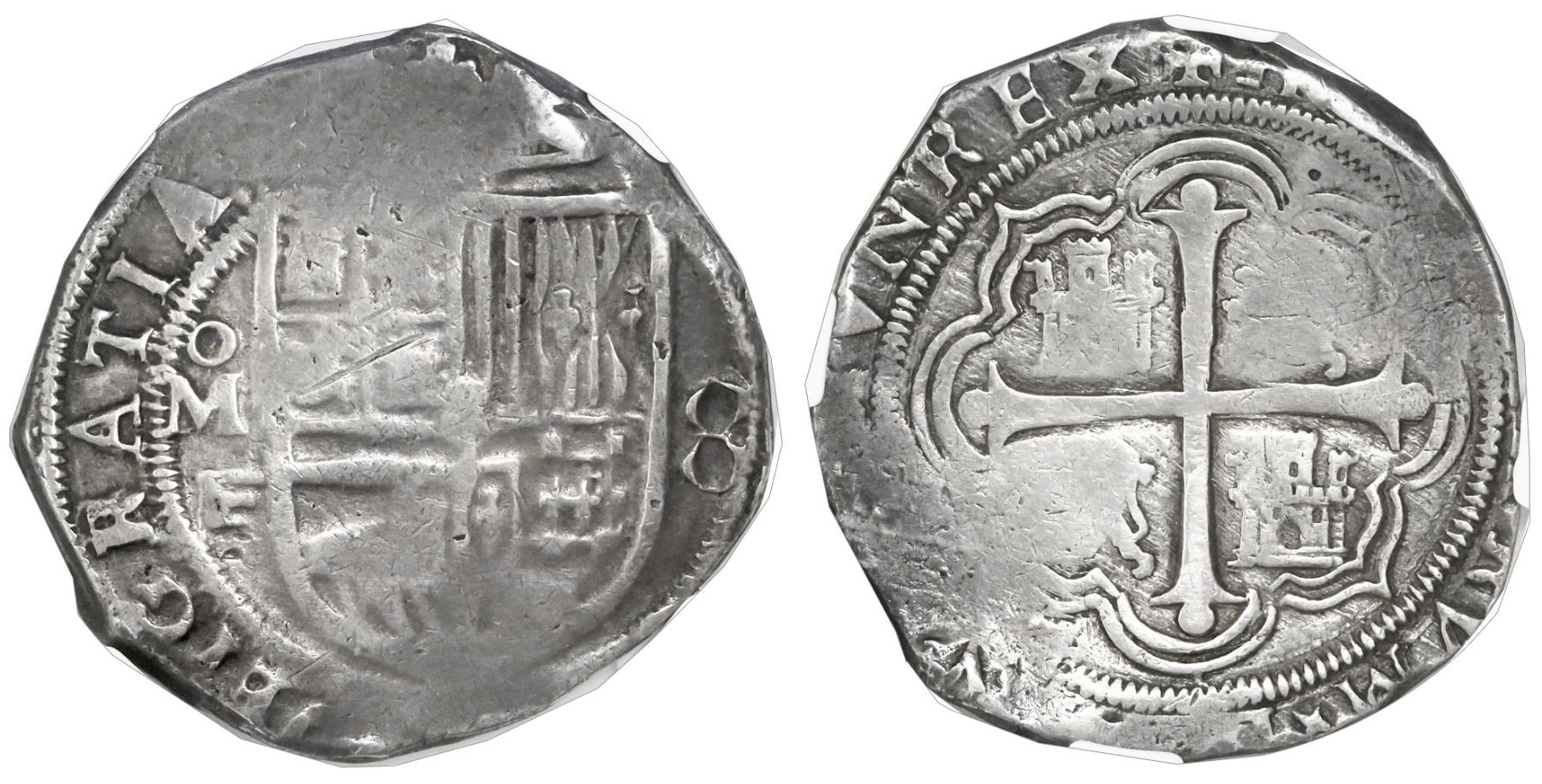 Mexico City, Mexico, cob 8 reales, Philip III, assayer F, pre-dated type, NGC VF 20.