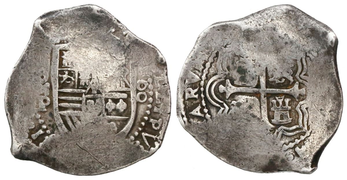 Mexico City, Mexico, cob 8 reales, Philip IV, assayer P (1660s). S-M19; KM-45. 27.10 grams. Broad flan with full but partially flat shield and cross, bold assayer and denomination, parts of king's name and ordinal, toned AVF for actual wear.