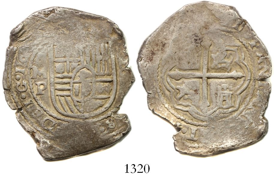 Mexico City, Mexico, cob 8 reales, Philip IV, assayer P (ca. 1650).
