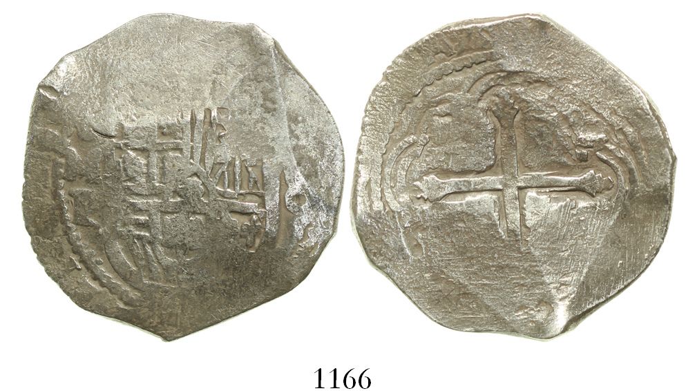 Mexico City, Mexico, cob 8 reales, Philip IV, assayer P. S-M19; KM-45. 26.65 grams. Round and nearly corrosion-free but much flatness, clear oMP, lightly toned all over (not much contrast). With ANACS photo-certificate from 1986, and pedigreed to our Auction #2, with original lot-tag #61. Recovered from: Concepcion, sunk in 1641 off Hispaniola