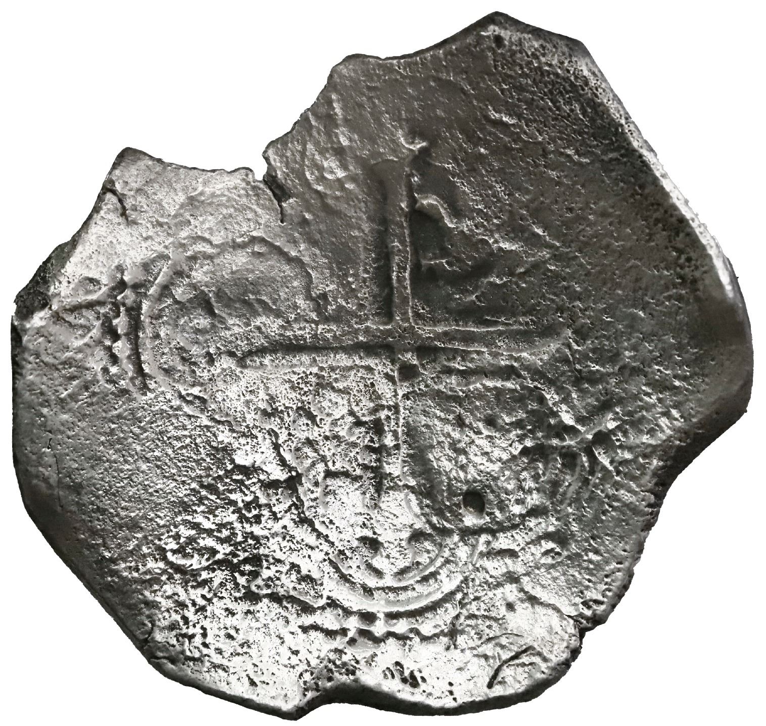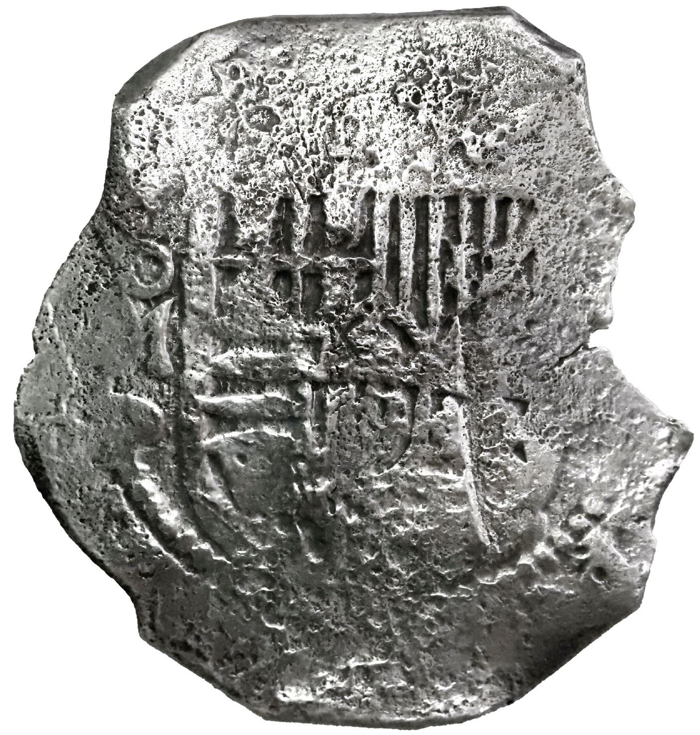 Mexico City, Mexico, cob 8 reales, Philip IV, assayer P. S-M19; KM-45. 23.52 grams. Full but lightly corroded shield and cross, clear oMP. With original tag and certificate 24377 from the salvors. Recovered from: Concepcion, sunk in 1641 off Hispaniola