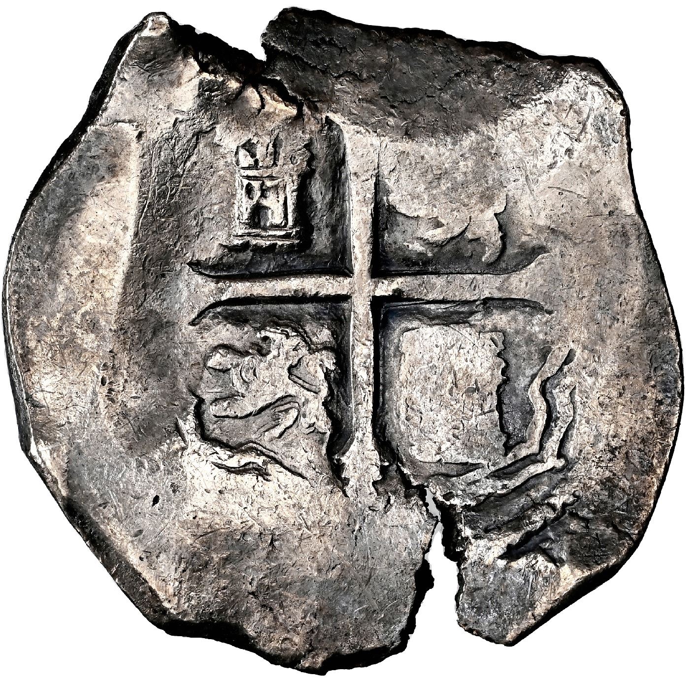 Mexico City, Mexico, cob 8 reales, Philip IV, assayer not visible (P), NGC VF details / saltwater damage / Concepcion (Shipwreck Blue Label). S-M19; KM-45. 26.70 grams. Solid and uncorroded, with bold full cross and shield, edge-splits, nicely toned. Pedigreed to the 45th Anniversary Collection, with original tag 26410 and official (generic) Letter of Authenticity. Recovered from: Concepcion, sunk in 1641 off Hispaniola