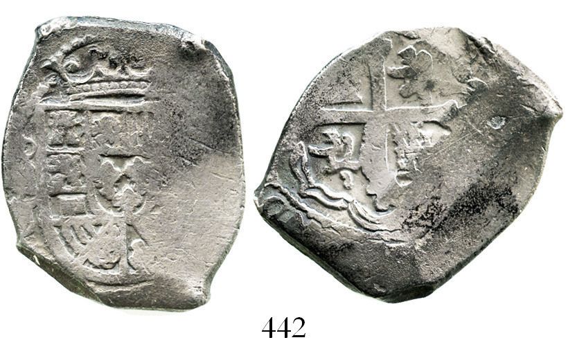 Mexico City, Mexico, cob 8 reales, Philip V, assayer J. S-M22; KM-47. 26.6 grams. Good full cross (o