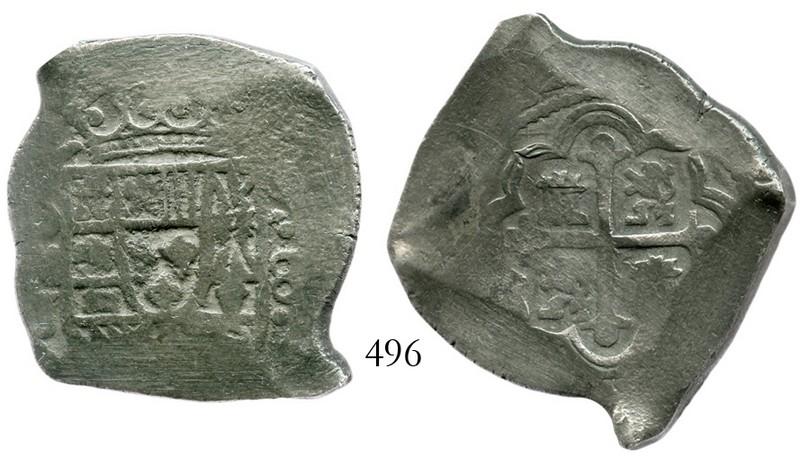 Mexico City, Mexico, cob 8 reales, Philip V, assayer J. S-M22; KM-47. 26.5 grams. Squarish shape with full shield and crown and denomination 8, full cross, richly toned, virtually no corrosion. Pedigreed to the estate of Karl H. Goodpaster (Real Eight conservator), with original Real Eight Co. certificate. Recovered from: 1715 Fleet, east coast of Florida