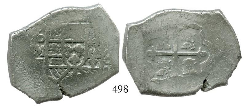 Mexico City, Mexico, cob 8 reales, Philip V, assayer J. S-M22; KM-47. 26.0 grams. Full oMJ and shield, nearly full cross, rectangular flan, negligible corrosion, small edge-split. Pedigreed to the estate of Karl H. Goodpaster (Real Eight conservator), with original Real Eight Co. certificate. Recovered from: 1715 Fleet, east coast of Florida