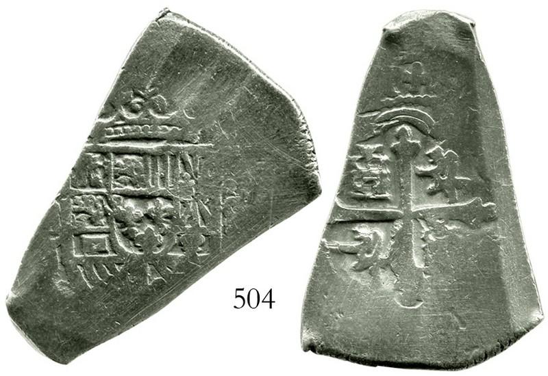 Mexico City, Mexico, cob 8 reales, Philip V, assayer J. S-M22; KM-47. 26.1 grams. Very curious wedge shape, with nearly full cross and shield, no corrosion, lightly toned all over. Pedigreed to the estate of Karl H. Goodpaster (Real Eight conservator), with original Real Eight Co. certificate. Recovered from: 1715 Fleet, east coast of Florida