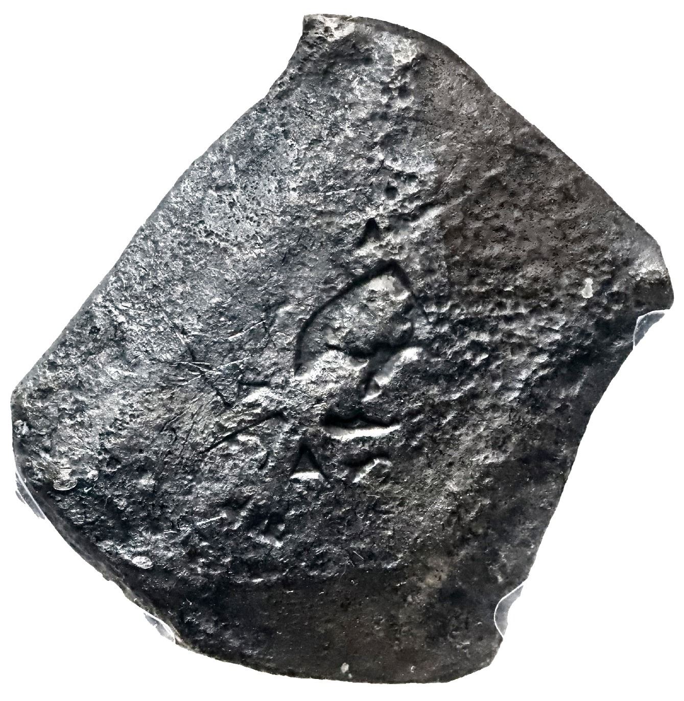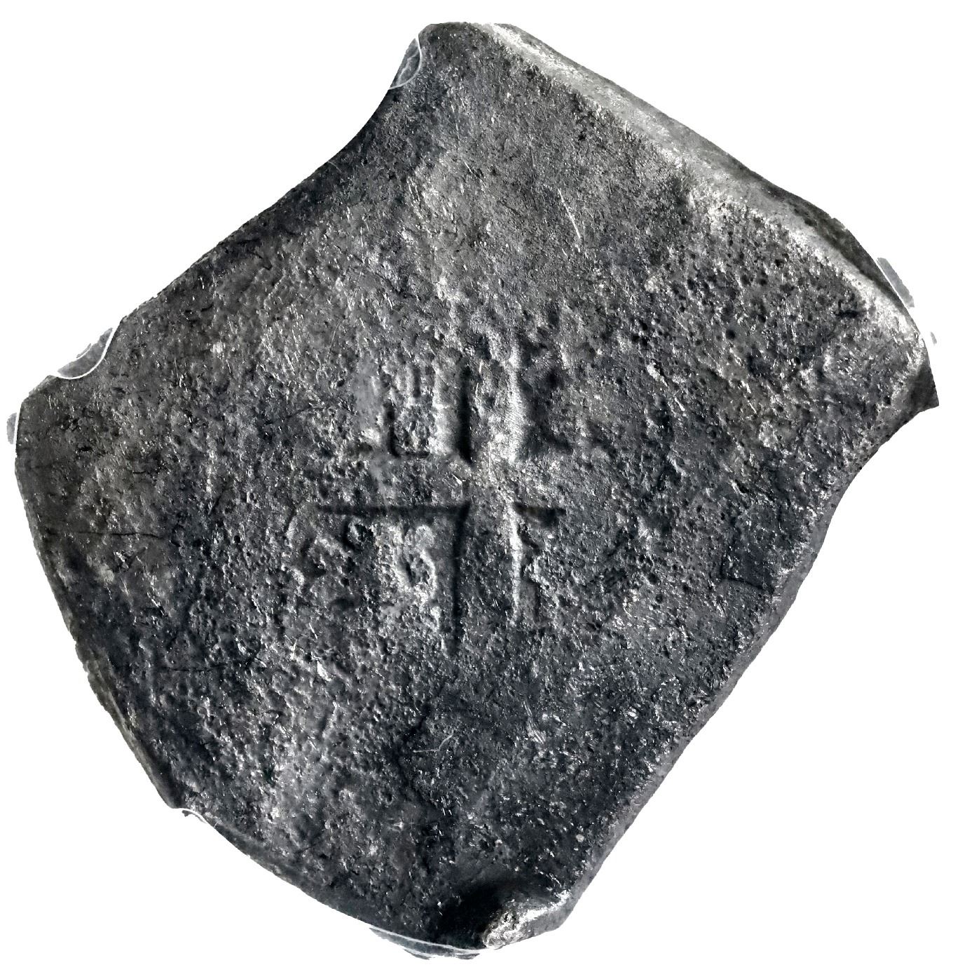 Mexico City, Mexico, cob 8 reales, Philip V, assayer not visible, PCGS F details / environmental damage / Akerendam. KM-47. Visually solid but with some surface corrosion, only the centers visible due to extensive peripheral flatness, toned all over, with one corner blunted on edge. Recovered from: Akerendam, sunk in 1725 off Norway