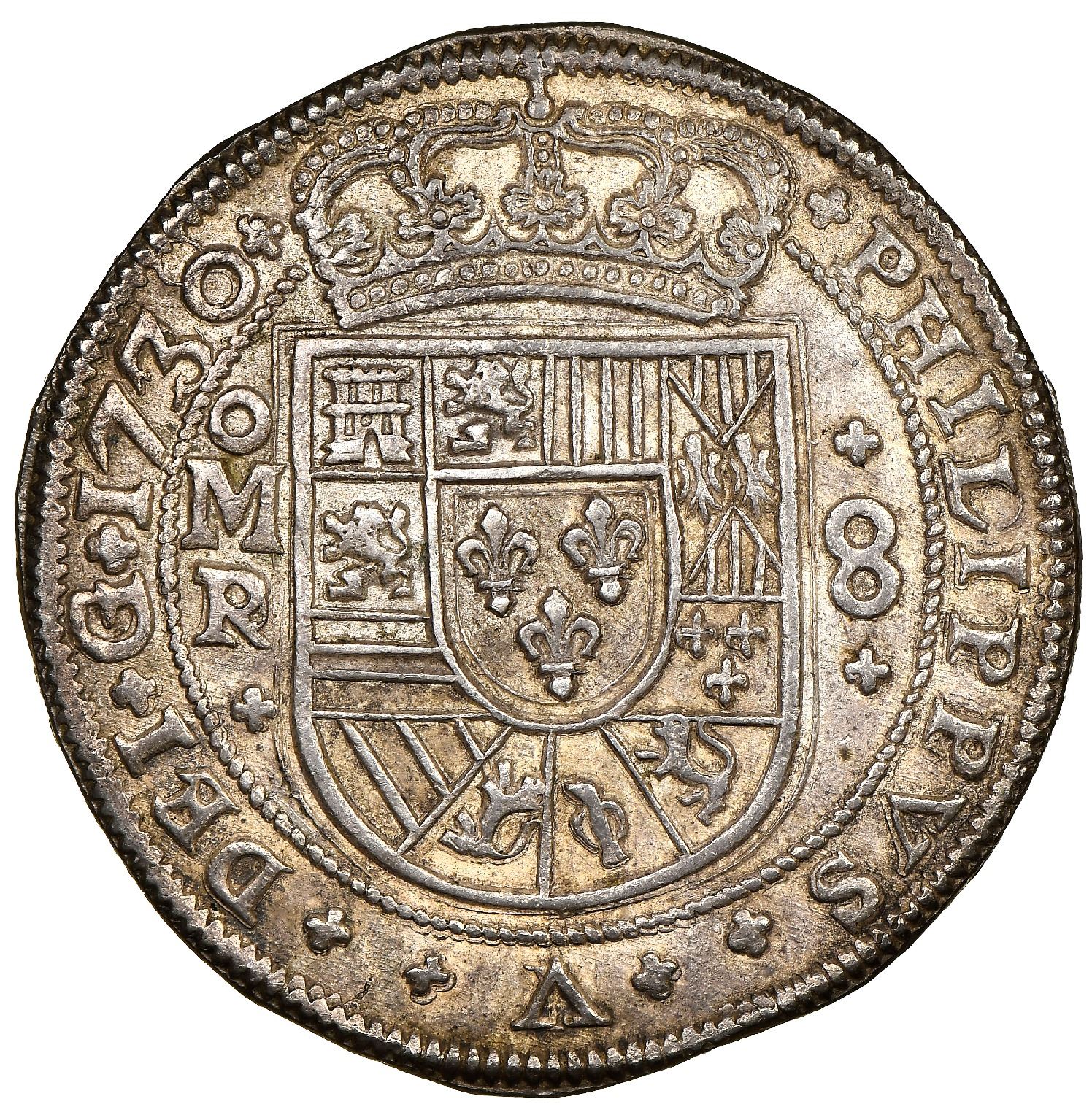 Mexico City, Mexico, cob 8 reales Royal (galano), 1730/28/5R/D, PHILIPPVS V over LVDOVICVS I, unique