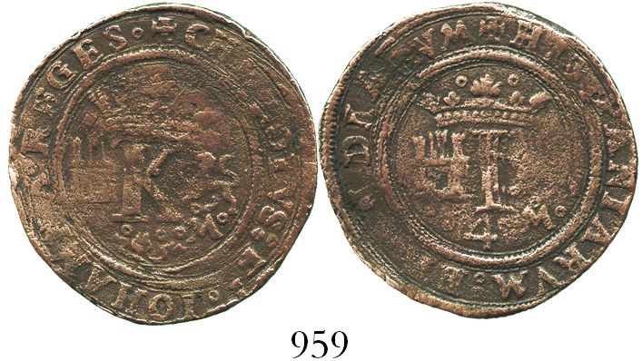 Mexico City, Mexico, copper 4 maravedis, Charles-Joanna, "Late Series," king's name as CHAROLVS.