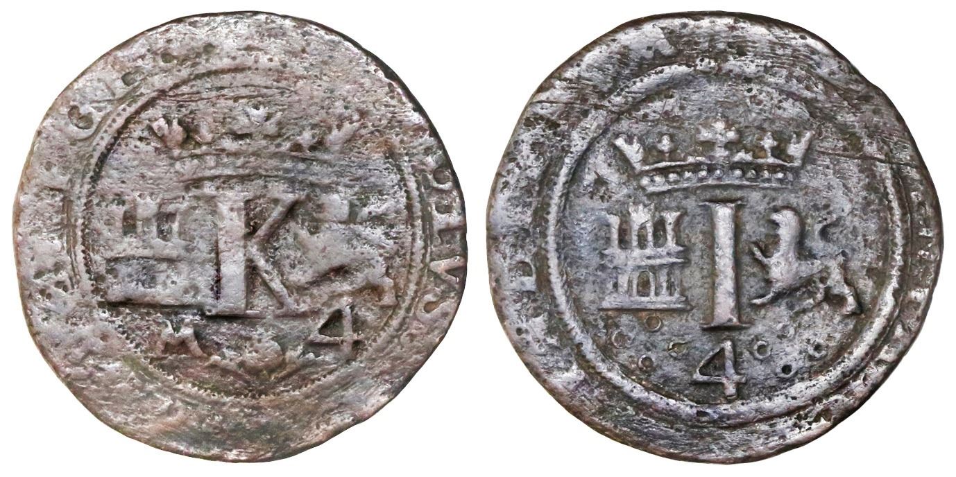 Mexico City, Mexico, copper 4 maravedis, Charles-Joanna, "Late Series."