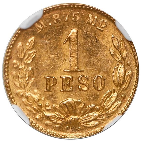 Mexico City, Mexico, gold 1 peso, 1903 M, small date variety, NGC MS 64.