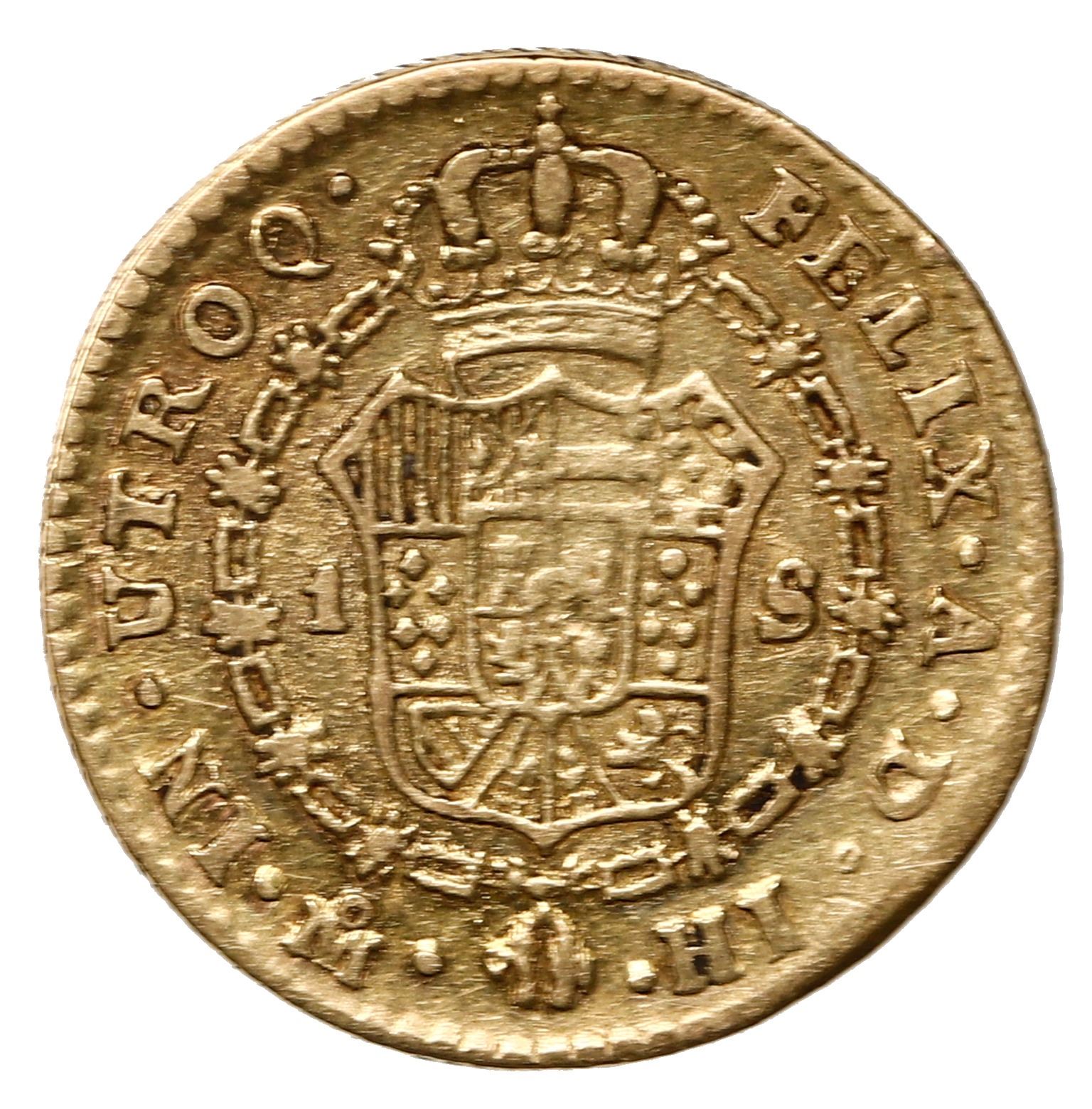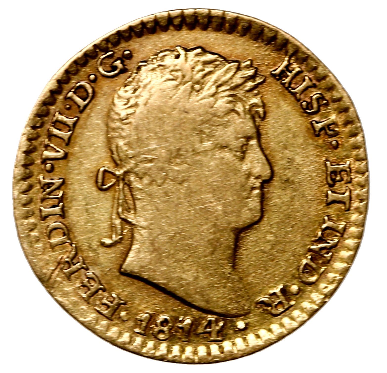 Mexico City, Mexico, gold bust 1 escudo, Ferdinand VII, 1814 HJ.