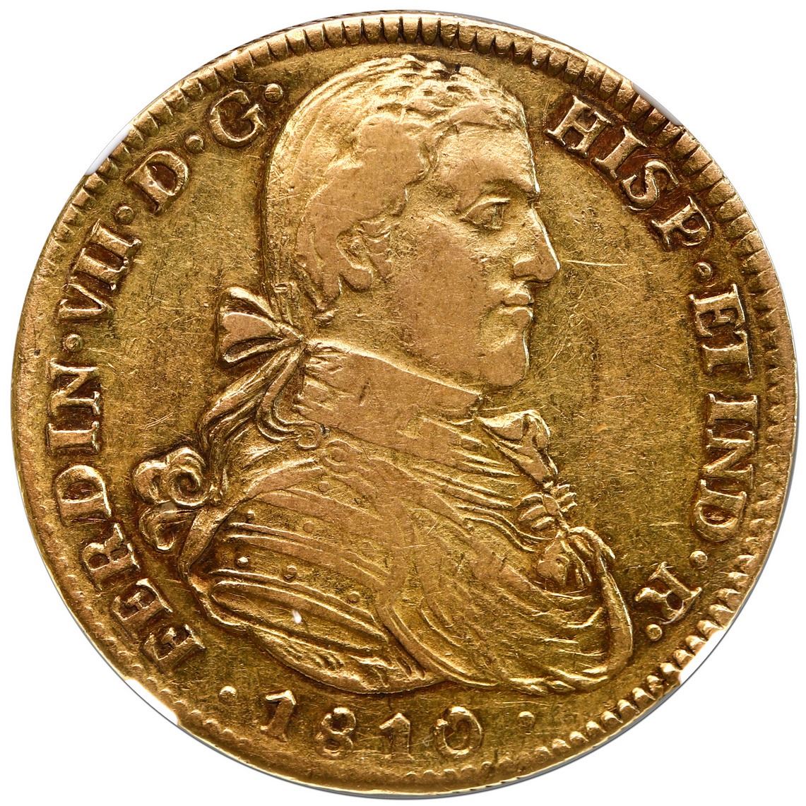 Mexico City, Mexico, gold bust 4 escudos, Ferdinand VII transitional ( armored  bust), 1810 HJ, NGC